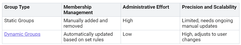 Dynamic Azure AD groups change user access automatically. This makes deployment easier and cuts down on admin work.