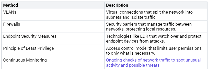 Microsegmentation breaks a network into smaller parts. Each part works as its own security area. This method stops unauthorized access and lowers the chance of attackers moving around.