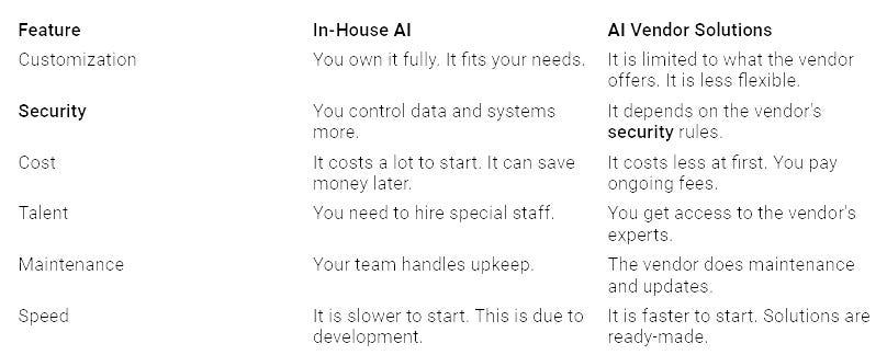 This table shows how in-house AI is different. It compares it to vendor solutions: