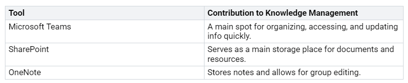 Keeping project information in one place is key for good teamwork. Microsoft 365 has tools that make managing knowledge easier. Here’s how different tools help: