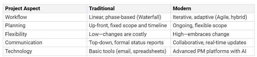 Project management has changed a lot over the years. In the past, it often used a straight approach. Teams followed strict methods like Waterfall. Each phase had to finish before starting the next one. This made it hard to change plans. Today, you deal with new challenges. Modern project management uses Agile and hybrid methods. These ways allow teams to work in steps. They can quickly adjust to changes and feedback.