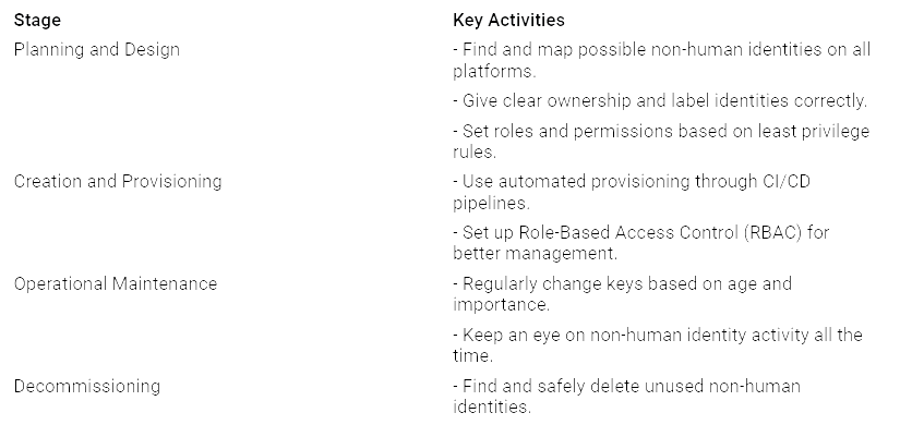 Good identity lifecycle management is key for non-human identities. You should do these important activities: