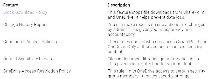 Centralized Governance: This feature lets you control permissions across SharePoint sites, which is important for GDPR and CCPA rules. It helps manage storage and stops oversharing.