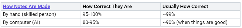 Writing notes by hand takes a lot of time. One person writes notes. They often miss some details. This person cannot join the meeting fully. Writing notes by hand is the best way to change sound or video into words. Some services say they are 98% correct. But people still make mistakes. Computers writing notes are not as good. They make mistakes. This happens because of loud noises. It also happens if people talk fast. Or if they have strong accents. Microsoft knows these problems.