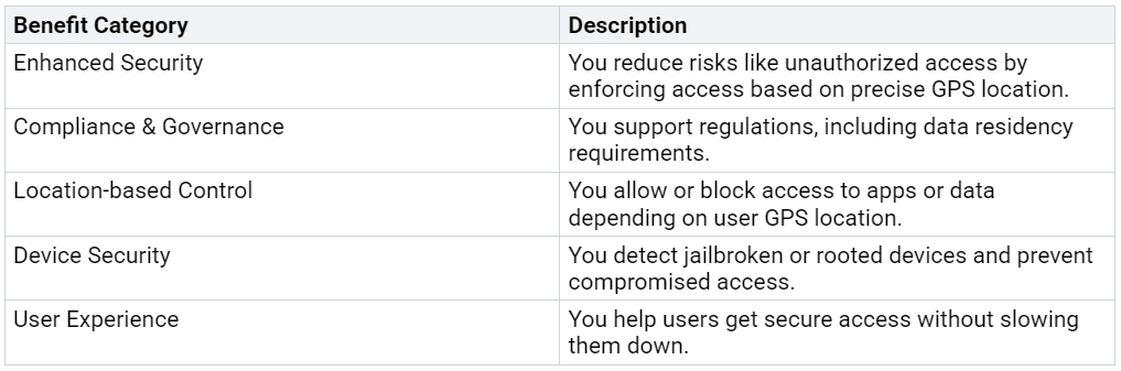 Using GPS-based Conditional Access gives you several key benefits: