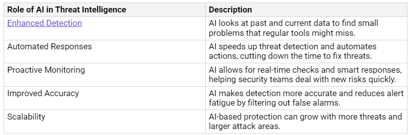AI threat intelligence helps with real-time watching and smart defense plans. This makes security better overall.