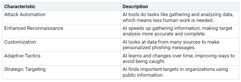 AI-enabled attacks have special traits that make them different from regular cyber threats. These attacks use automation and flexibility. This helps attackers carry out complex plans with little human help. The table below shows the main traits of AI-driven attacks: