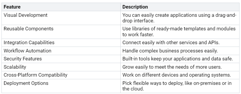Low-code platforms have many features that help you create workflows. Here’s a quick overview: