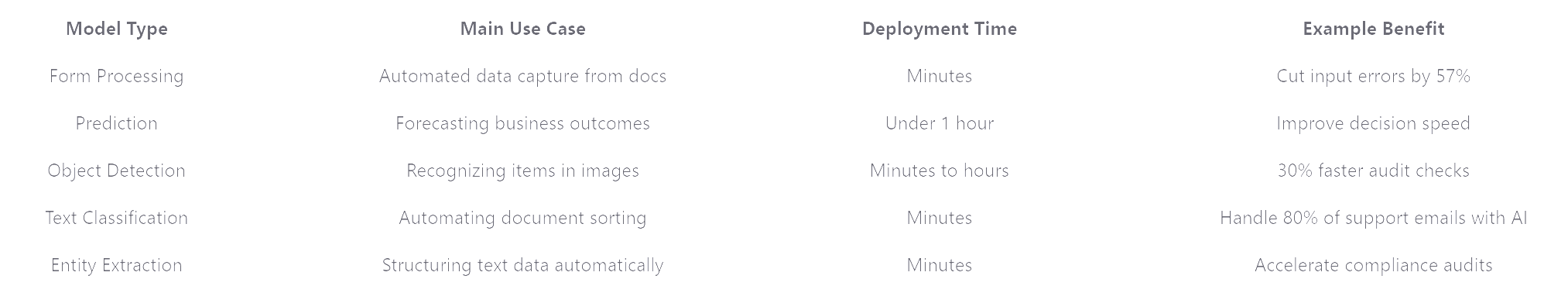 When businesses turn to power apps ai builder for automation and advanced insights, they often ask—what sorts of models are actually available? Microsoft has engineered AI Builder within Power Apps to support a diverse lineup of AI models, specifically designed for real business scenarios. The platform offers both ready-to-use prebuilt AI models and the ability to craft bespoke solutions with custom models. This flexibility means organizations can tackle a wide spectrum of use-cases, from document automation to predictive analytics, without heavy investments in data science expertise.