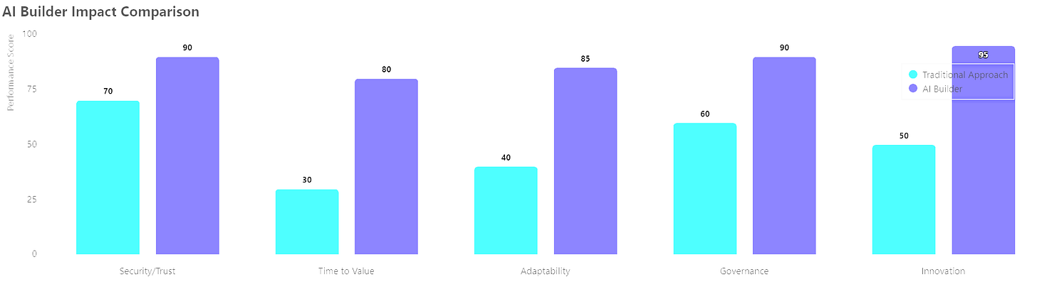 Secure, Compliant Innovation: AI Builder leverages industry-standard frameworks like zero-trust—meaning every app and model benefit from defense-in-depth strategies. Sensitive data stays private, while audit trails and role-based controls support regulatory demands.