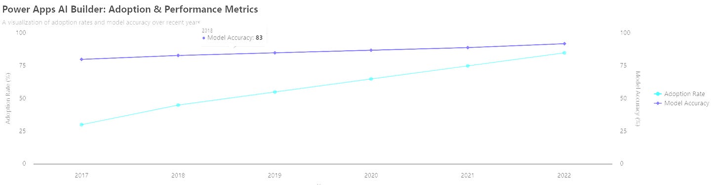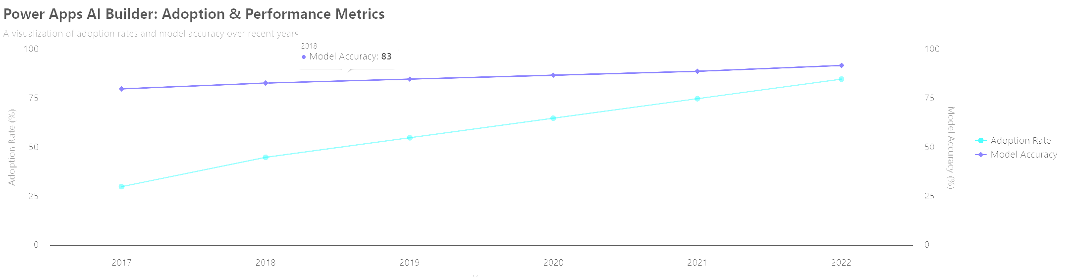 To better understand these concepts, let’s examine some key data on adoption rates and real-world model performance in Power Apps AI Builder…
