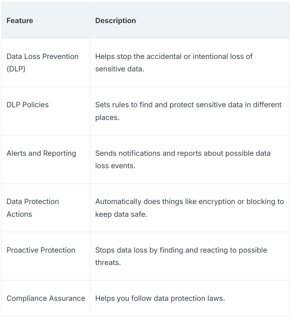 Microsoft Purview has many features that help find different types of data risks. These include:
