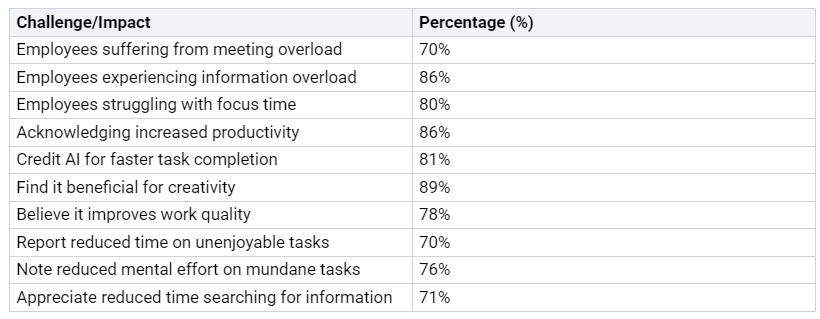 Microsoft 365 Copilot is a powerful AI tool. It helps you work better in different applications. This smart assistant helps you solve common problems at work. Many workers have trouble with too much information. They find it hard to manage their time and stay focused. Recent surveys show that 86% of workers deal with this problem. Also, 70% say they have too many meetings.