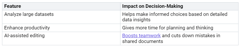 Microsoft 365 Copilot helps you make better decisions. It quickly looks at large sets of data and gives you useful insights. This means you can make choices based on real-time information instead of just guessing. Here’s how Copilot helps with data-driven decisions: