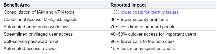 Microsoft Entra has special features for identity and access management. Companies see real improvements when they use it. They can onboard people faster. They spend less money on identity problems. Their security gets better.