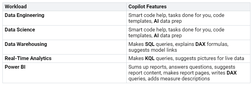 For data preparation, Copilot has great AI tools. It gives you automatic ideas. It uses rule-based AI. This AI looks at your data. It shows useful Data Wrangler actions. These ideas change as you work. You can also make your own actions. Just tell Copilot what you want. Copilot writes the code for you. You can see it first. Copilot for Data Engineering and Data Science gives you AI tools. It helps data experts. It finishes code smartly. It does common tasks for you. It gives you code templates. This helps you build strong pipelines. It helps you make complex models. Copilot uses advanced machine learning AI algorithms. It gives you code ideas. These fit your task. This makes coding easier. It makes coding better. It helps from getting data ready. It helps to get insights. You can also “Prep data for AI.” This helps AI understand your data better. This gives more correct answers. It has AI Data Schema. This lets model makers pick important tables. They pick fields and links. This helps Copilot understand data. Verified Answers link questions to visuals. This makes sure Copilot’s answers are approved. AI Instructions let users add more info. This is about their data model. This makes AI answers better.